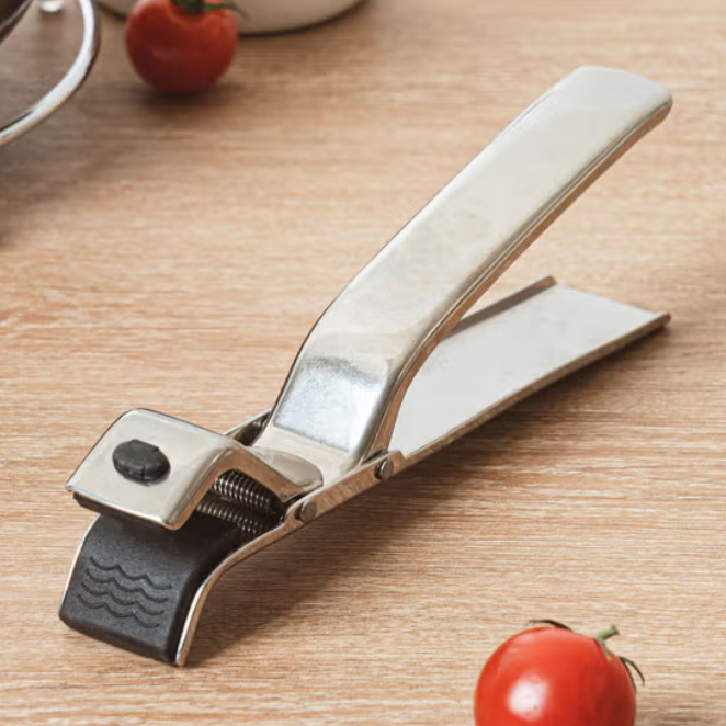 제품 안내에는 뚝배기 집게라고 표시되어 있지만, 실제 사용 시 뚝배기 특유의 좁은 입구 모양 때문에 안정감 있게 잡기 어렵습니다.